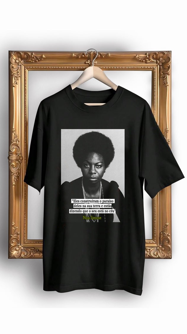 A nova camiseta A286 – Nina Simone é um manifesto em forma de arte. Com a frase “Eles construíram o paraíso deles na sua terra e estão dizendo que o seu está no céu”, a peça ecoa a voz poderosa de resistência e consciência da artista. Em modelagem oversized e tecido de alta qualidade, une conforto, estilo e mensagem — feita para quem veste verdade, história e atitude.